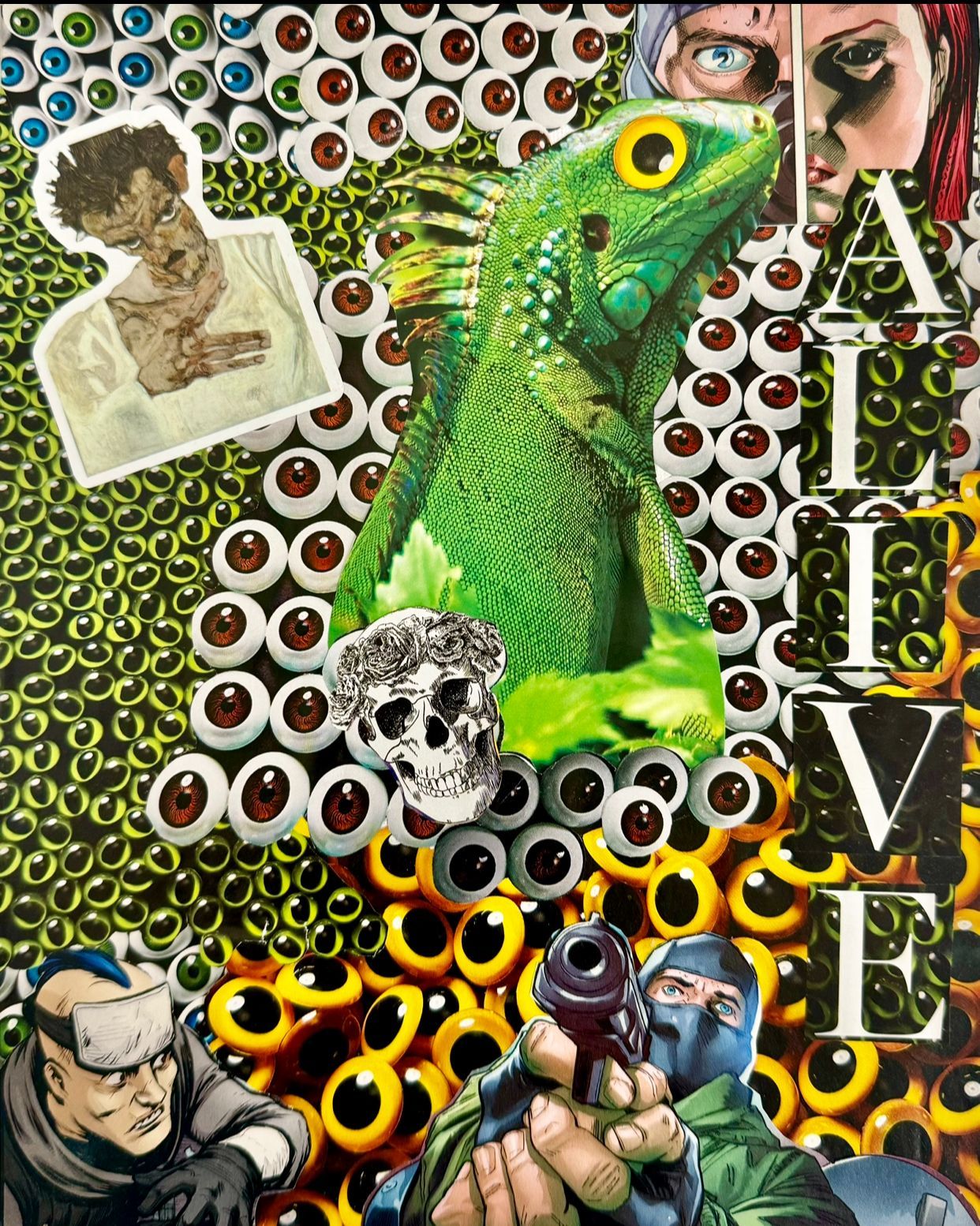 (Used magazine images and comic books.)